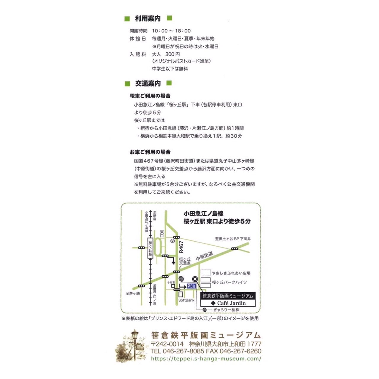 休館:月曜・火曜及び夏季・年末年始※月曜が祝日のときは火曜・水曜